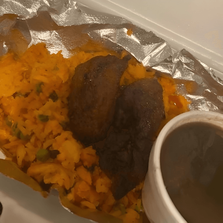 Rice with chunks of hand-pulled chicken cooked with fresh onions, peppers, tomatoes & mixed vegetables