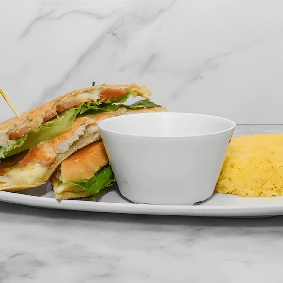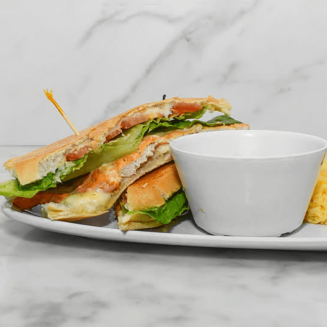 Marinated chicken breast with Swiss cheese, & house mayo with fresh lettuce and tomato, hot-pressed in Cuban bread